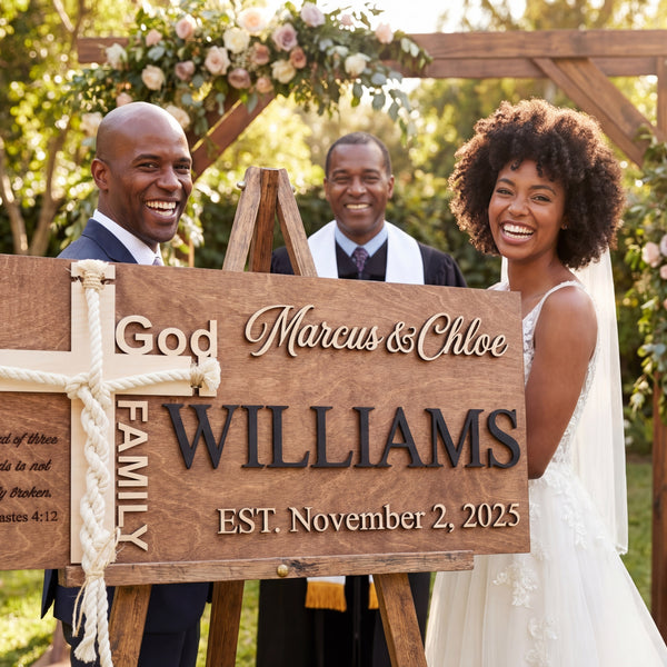- Ceremony Ready: Specializing in Cord of Three Strands & Unity Cross signs.